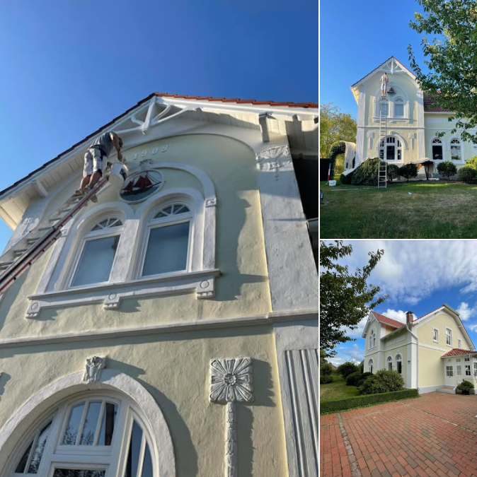 Fassaden Arbeiten bis in das kleineste Detail mit Keim Silikat Farbe die einen neuen Glanz verschafft.